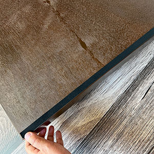 滑り止めテープの裏面のシールを少しはがします。(2)で確認した位置に滑り止めテープの端を貼ります。滑り止めテープの裏面のシールをはがしながら、位置を調整しながら、丁寧に貼っていきます。この時、滑り止めテープを強く引っ張らないように気を付けてください。引っ張るとテープが伸びてしまいます。 |